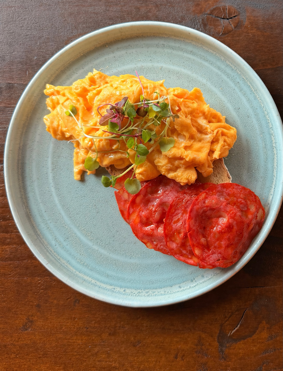 SCRAMBLED EGGS WITH BEANS ON SOURDOUGH (v)